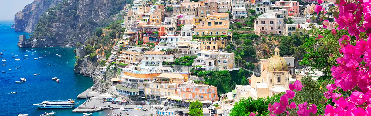 Der Hafen von PositanoPositano zählt zu den bekanntesten Sehenswürdigkeiten der Amalfiküste. Das Dorf scheint förmlich an die Felsen geklebt und besteht aus einem Labyrinth aus Treppen, pastellfarbenen Häusern und Terrassen. Schon der Anblick allein ist eine Sehenswürdigkeit. Positano verbindet Glamour mit natürlicher Schönheit und ist intensiv, lebendig und unvergesslich – die Amalfiküste in ihrer ikonischsten Form.